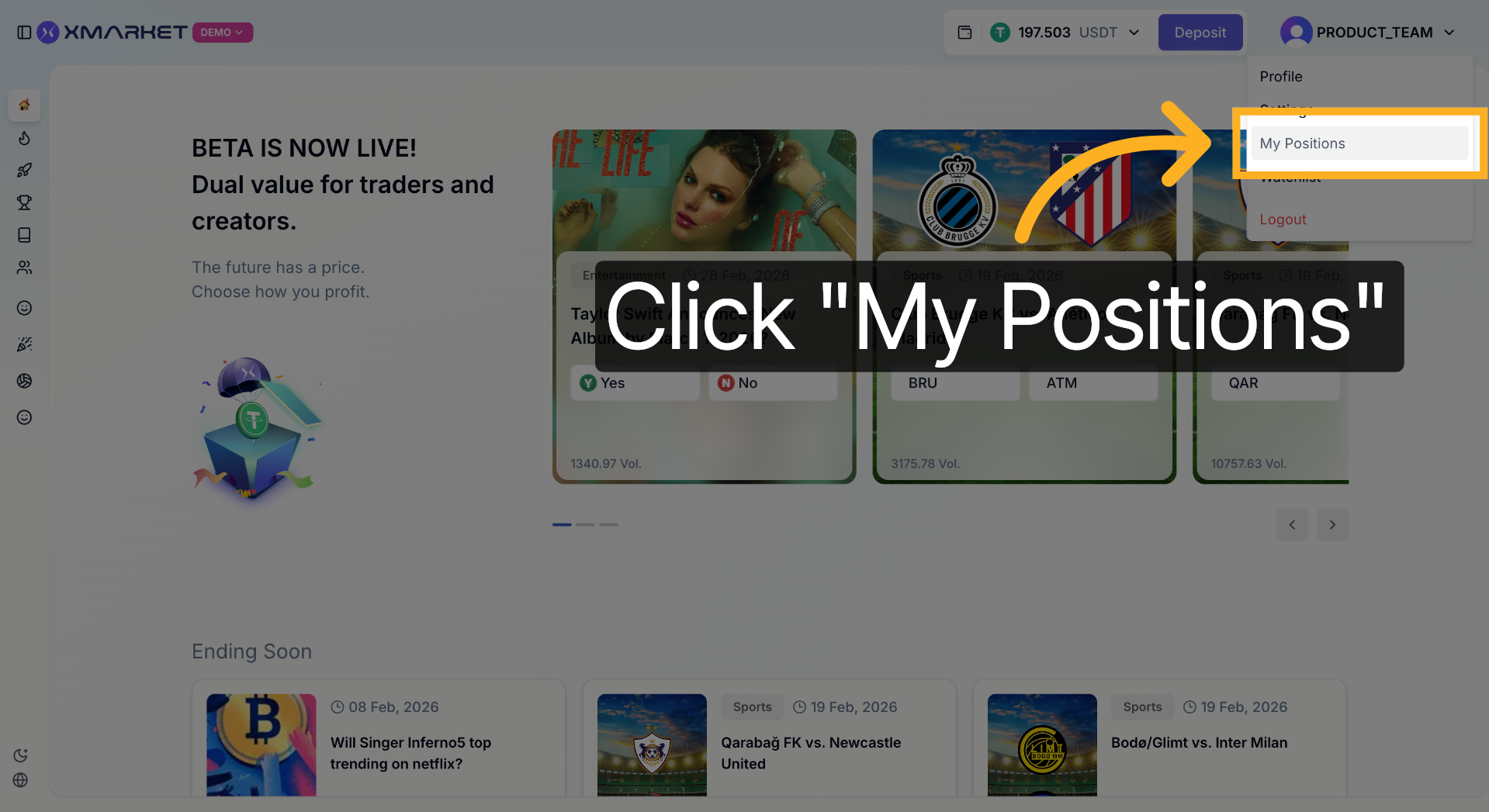 Xmarket 계정에 로그인한 후, My Positions를 클릭합니다.