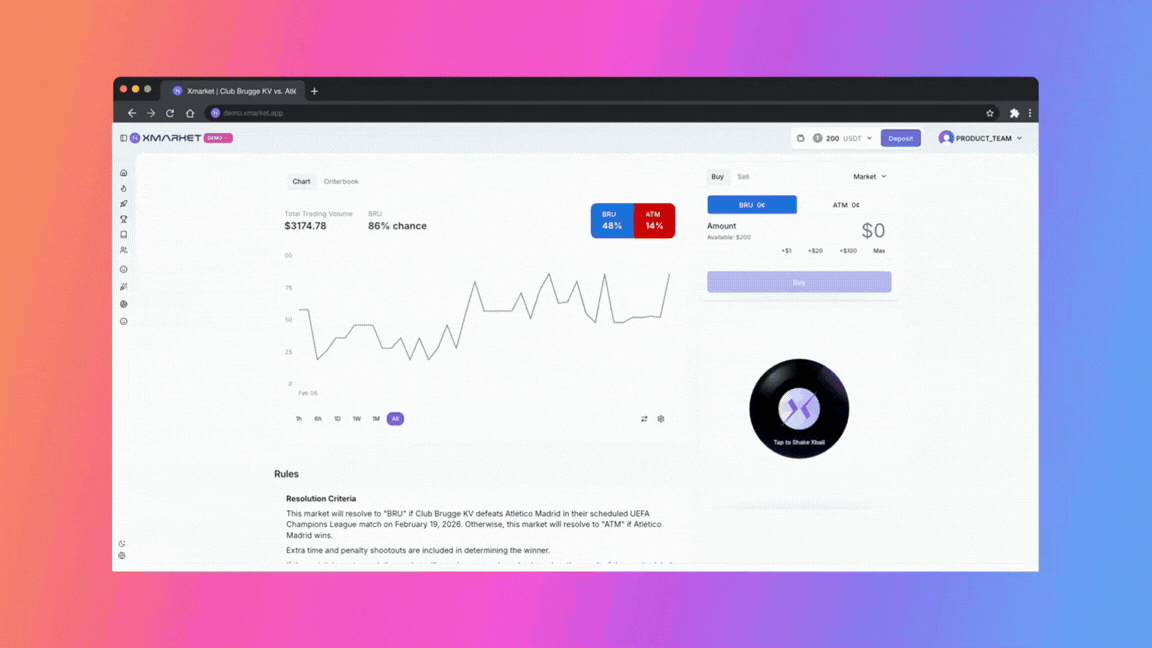 예를 들어, Club Brugge KV vs. Atlético Madrid 마켓에서 "Club Brugge KV 승리" 주식에 지불하고 싶은 최대 가격이 **60¢**인데 현재 가격이 **61¢**인 경우, 60¢에 리밋 오더를 걸고 다른 트레이더가 해당 가격에 매도할 때까지 기다릴 수 있습니다.
